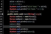 마찬가지로 Korea(String name) 메소드내에서 this(name,-1); 을 통해 새로운 생성자를 또 호출해버립니다. 17번 라인을 보시면 String형, int형을 갖는 Korea()메소드가 보이네요. 결과적으로 완전 거꾸로 실행이 되어 버립니다^^;