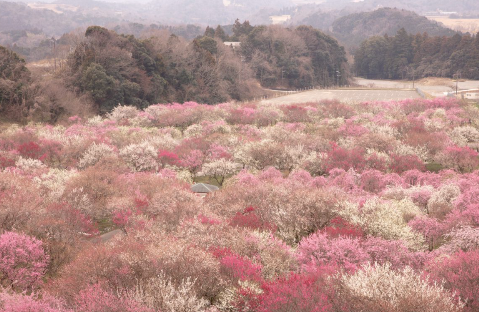 스즈카산맥을 배경으로 분홍색과 흰색 꽃이 만발하는 4,000송이의 매화를 바라보며 멋진 공원 산책을 즐겨보는 것도 좋겠습니다.