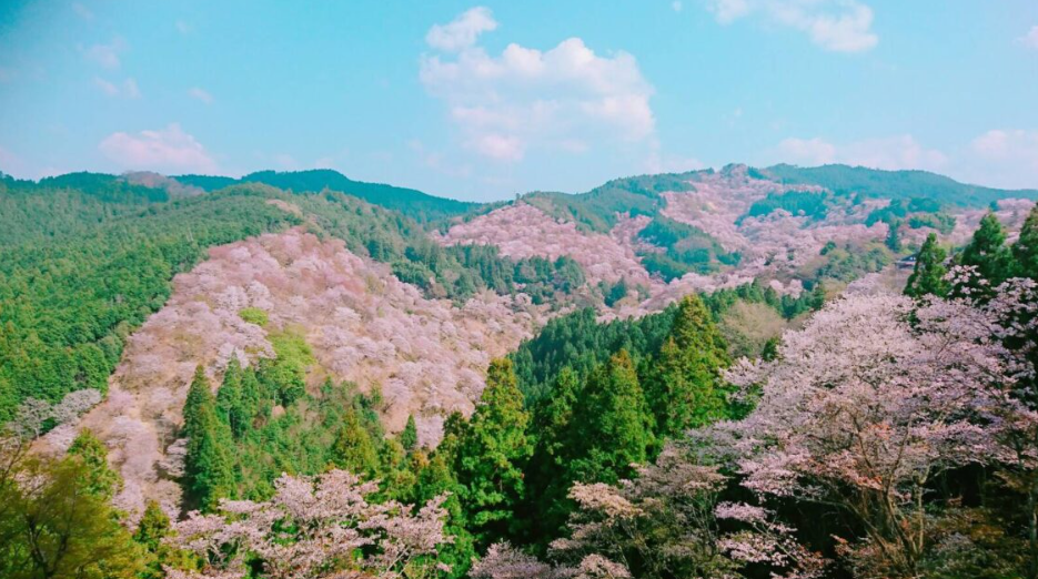 요시노산은 나라현에 있는 멋진 벚꽃놀이 장소로 널리 알려져 있습니다.