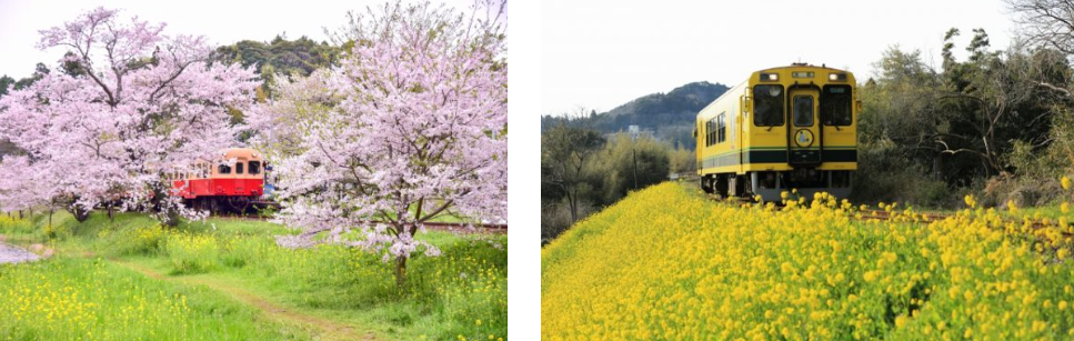 1988년 개업 이래 오하라 역에서 와사 나카노 역까지 연결되어있고, 창문 너머로 즐길 수 있는 아름다운 전원 풍경을 가로지르고 있다. 대도시의 주요 철도 노선처럼 많은 승객이 찾는 것은 아니지만 3월 중순부터 4월 초순까지 피기 시작하는 유채꽃, 이 아름다운 노란색 꽃을 감상하기 위해 찾는 사람이 많다고 하네요.
