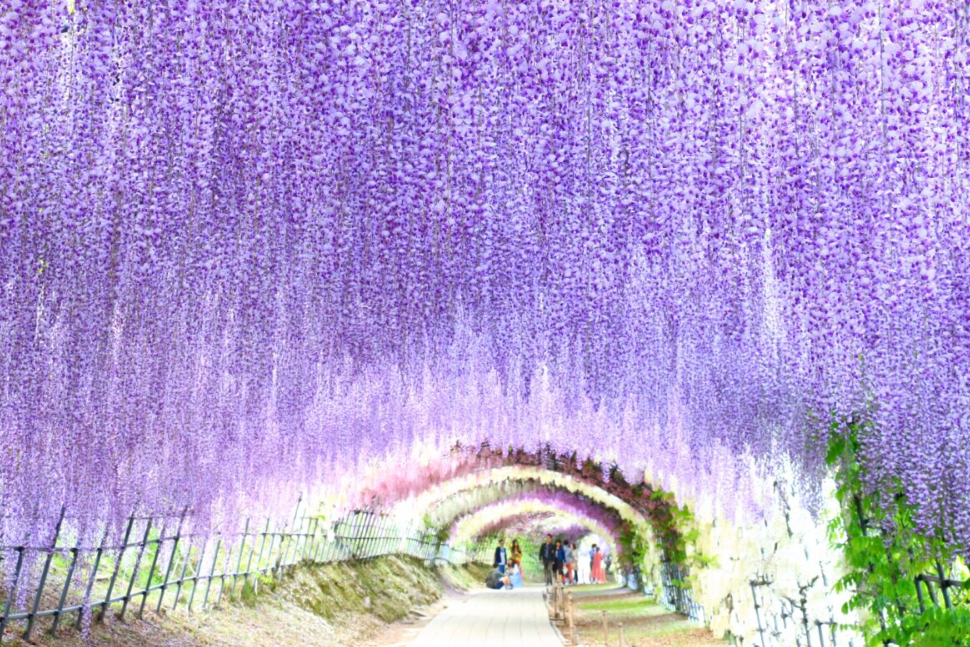 이 정원은 수천 그루의 등나무꽃으로 만들어진 장엄한 경치로 관광객을 맞이하는데요. 보라색, 흰색, 분홍색 등 다양한 색상이 주변 자연과 함께 믿을 수 없을 정도로 아름다운 대비를 보여주고 있습니다.