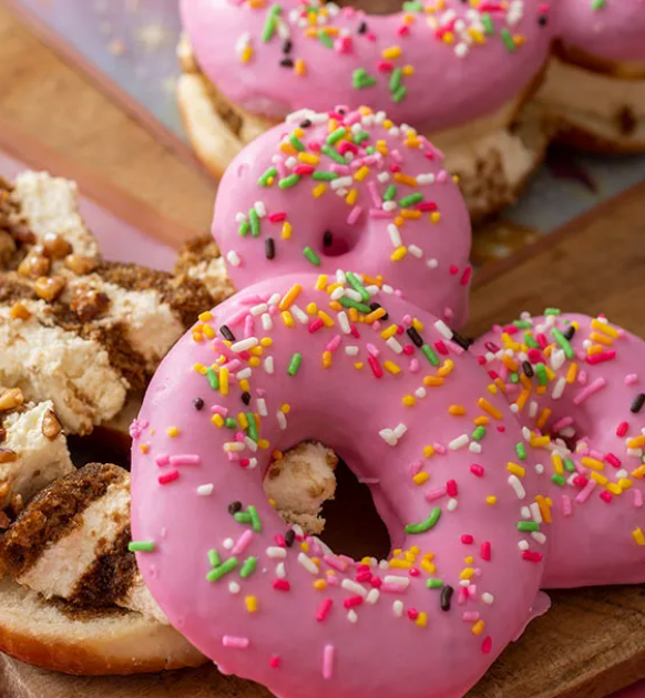 도넛도 인기 있는 메뉴 중 하나인데, 도넛 위에 칼라스프레이로 만들어진 다양한 색상의 초콜릿과 티라미스를 더한한 "티라미스 도넛(아몬드 포함)". 핑크색 코팅된 도넛은 색감이 아름다우며, 아몬드의 식감이 맛에 아큰 역할을 한다고 하네요.