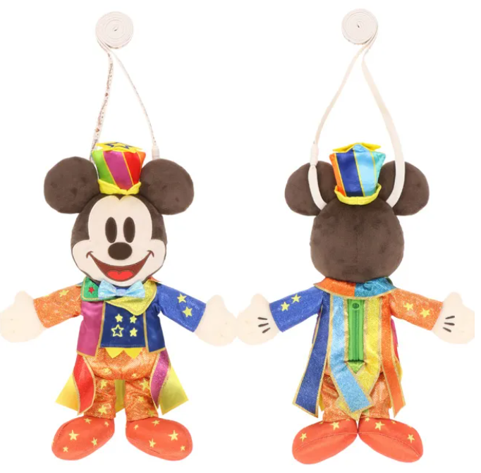 한정판 옷을 입은 미키마우스가 그려진 숄더백. 파크 내에서 미키마우스와 함께 돌아다니며 많은 사진을 찍어보세요.