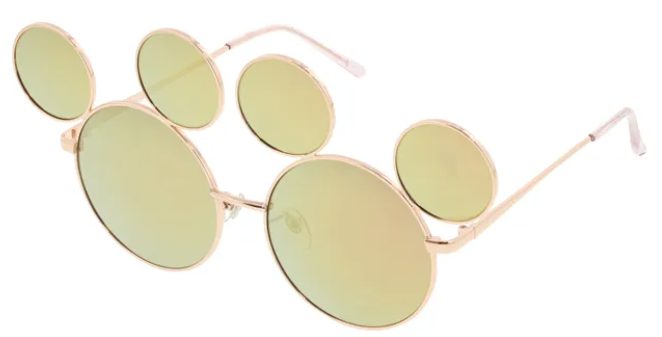 미키 마우스 모양의 렌즈가 귀여운 선글라스입니다. 밝은 색상이기 때문에 사랑스러운 느낌이 나요.