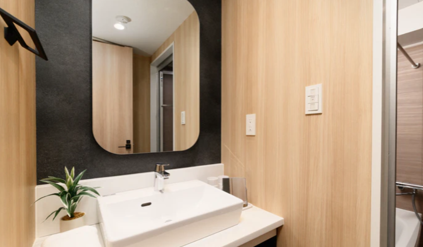 호텔 NUTS의 넓은 방들은 깔끔하게 디자인되어 있으며 미니멀한 느낌을 주고 있습니다. 다른 호텔에 비해 욕실과 화장실이 특히 큽니다. 큰 거울과 싱크대가 있으며 남성용 화장품이 충분히 비치되어 있어 도쿄의 다른 호텔과는 다른 구성의 호텔이라고 할 수 있습니다.