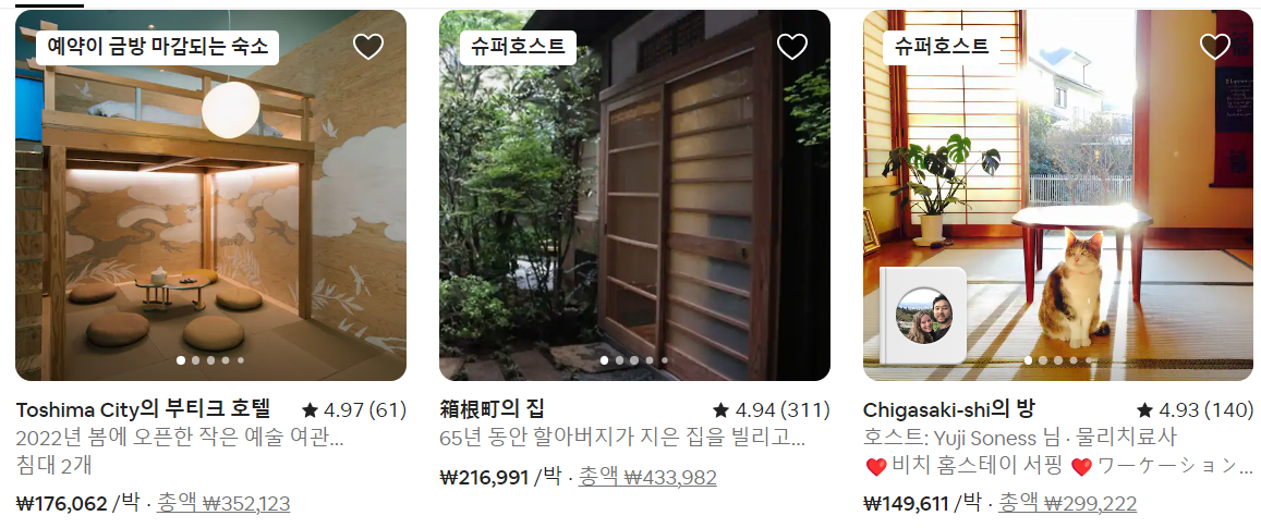 에어비앤비는 취향에 따라 정말 다양한 숙소가 있습니다. 직접 찾아보시는 것을 추천해드립니다!