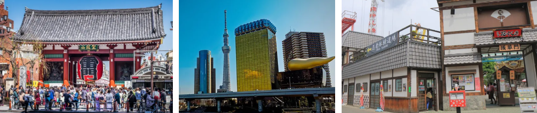 아사쿠사는 도쿄에서도 가장 유명한 역사적인 명소인 센소지(Senso-ji)와 나카미세 상점가(Nakamise Shopping Street)를 중심으로 관광객이 꼭 방문하는 장소 중 하나입니다.