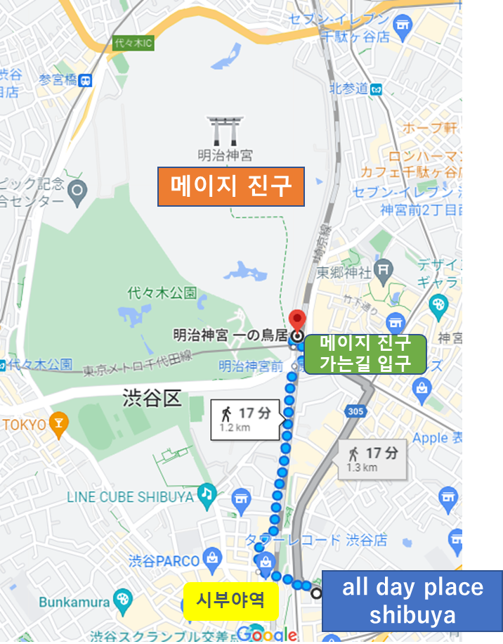 〇주소: 151-0053 Tokyo Shibuya-ku, Yoyogi 2-3-1