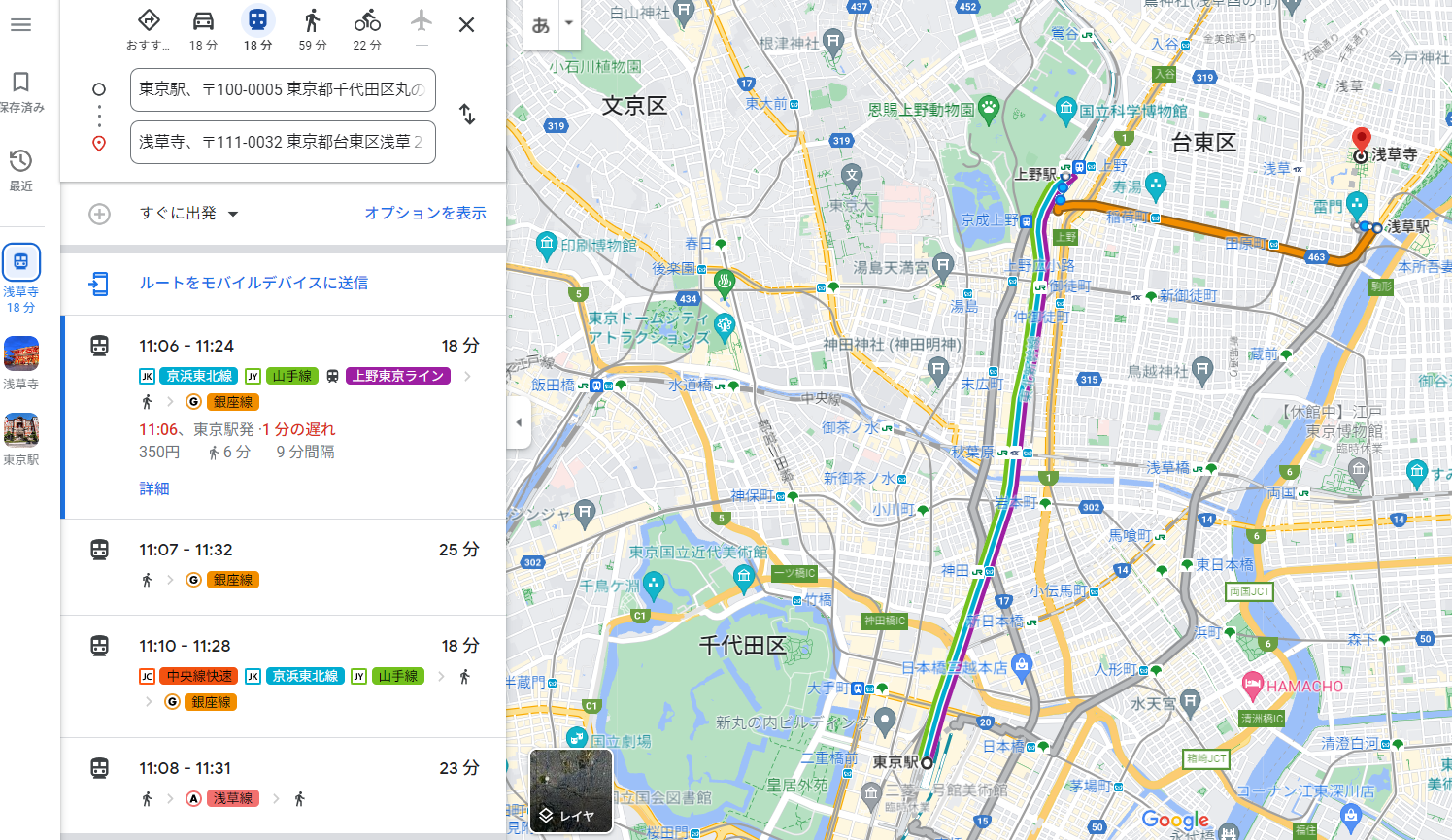 〇센소지까지 거리(★★★★☆): 지하철/전철로 약 20분