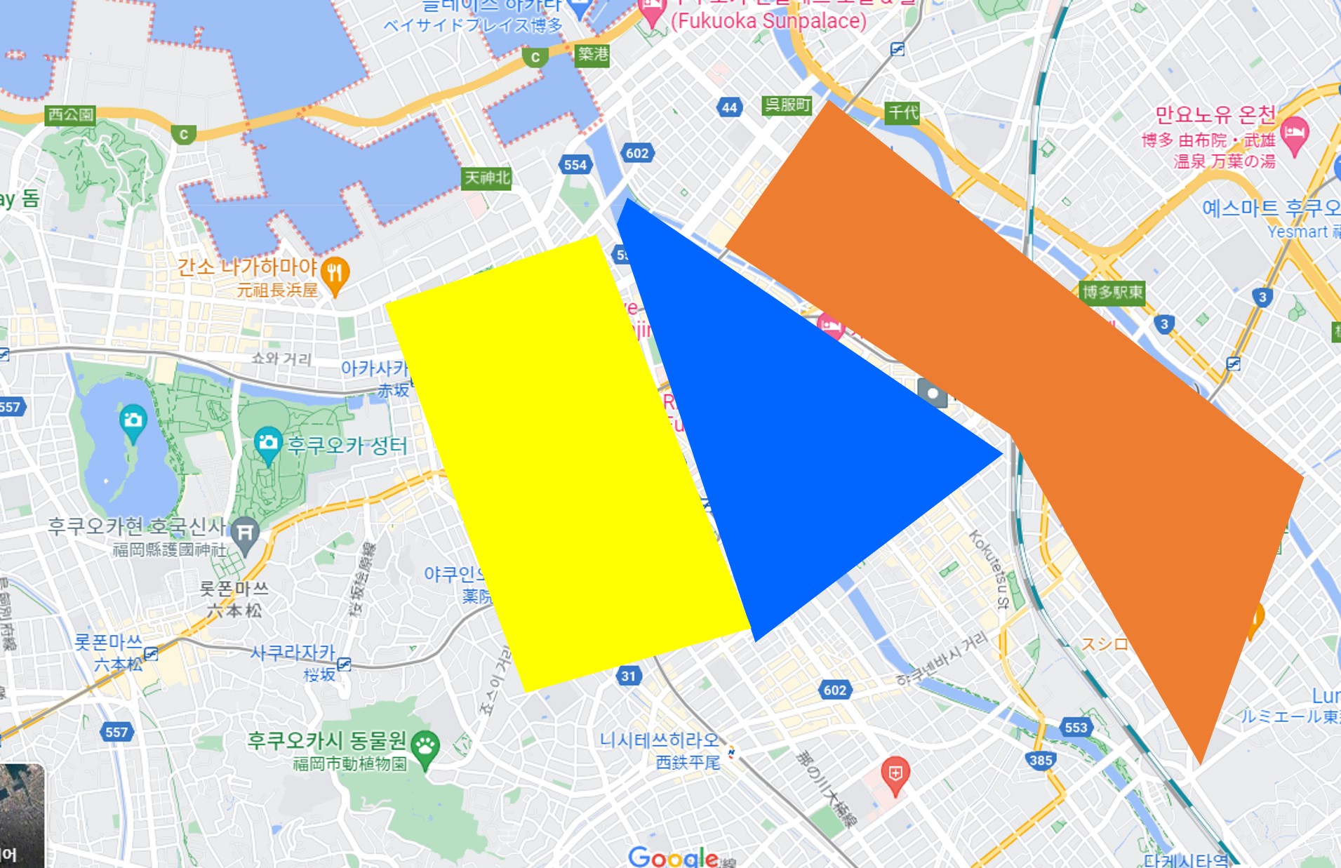 ●주황 – 하카타 역 주변