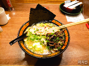돼지 뼈를 오랜 시간 푹 고아서 만든 톤코츠 육수로 유명하며, 진한 크림 같은 육수의 깊은 맛이 우러납니다. 부드러운 차슈(돼지고기), 파, 목이버섯 토핑은 더 다양한 맛을 만들어준답니다.