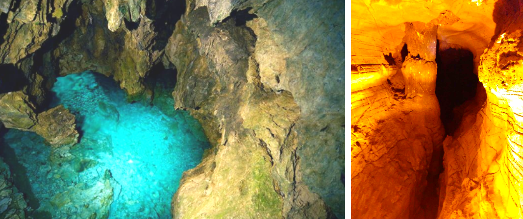 일반인들을 위해 개방된 코스는 400m이지만 동굴의 총 길이는 1,046m라고 해요. 공개된 구역에는 약 50개의 포인트가 있으며, 주요 포인트는 높이 30m인 지하 폭포 "오곤의 대폭포"가 대표적인 관찰 지점이라고 해요.