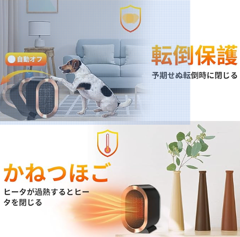 [2023 겨울 NEW · 히터] 전기 스토브 세라믹 히터 인기 난방 기구. 세라믹 팬 히터 자동 목 흔들림. 2 초 신속 히트가동. 쇼크 대책. 800 W / 1200 W 과열 방지. 저소비전력(에너지 절약타입). 받침대 라이트 첨부. 일본어 설명서. PSE 인증 (블랙)