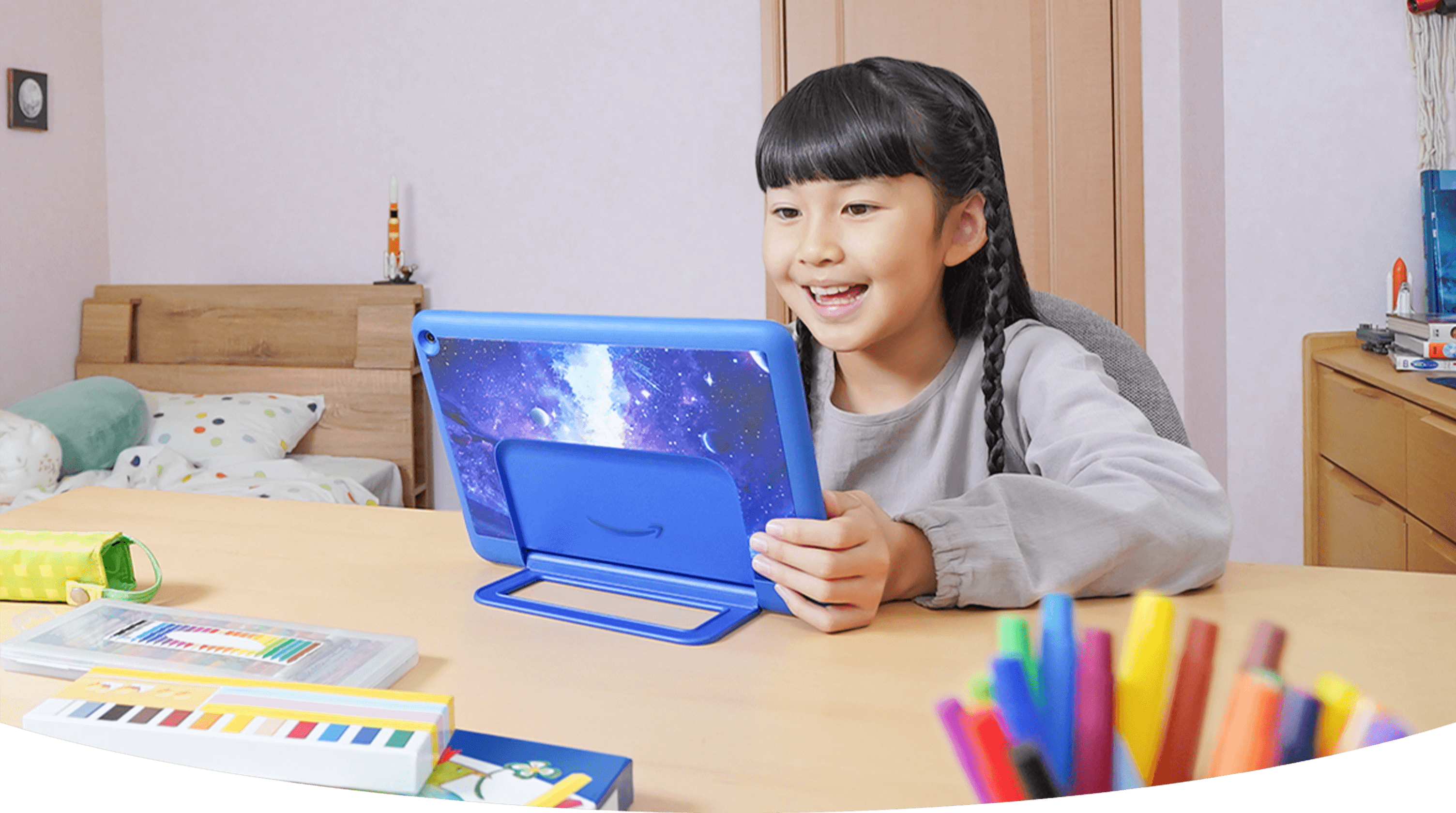 Amazon Fire HD 10 Kids Pro (10인치)는 아이가 안전하고 유익하게 태블릿을 사용할 수 있도록 도와주는 제품입니다.