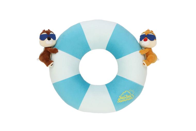 수영 튜브에 매달려 있는 칩 앤 데일이 매력적인 귀여운 디즈니 쿠션.