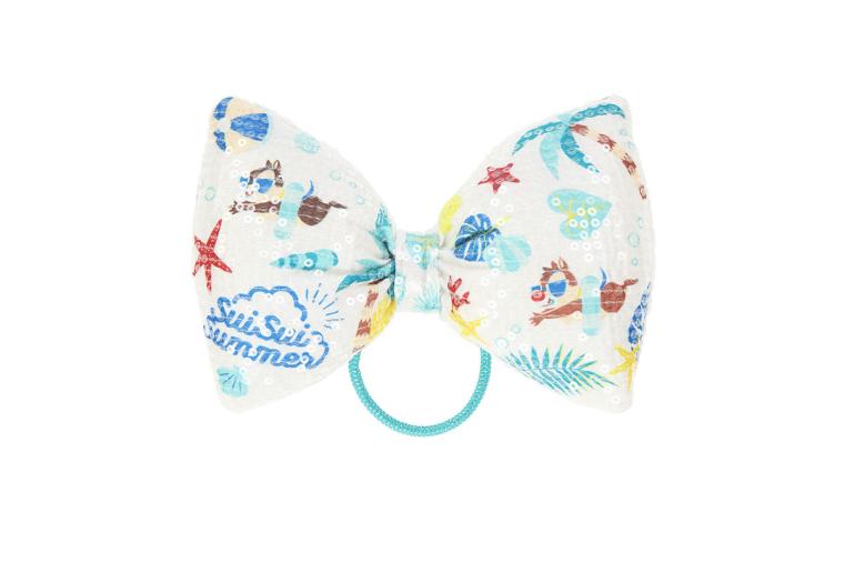 바다에서 수영하는 칩 앤 데일과 귀여운 천에 스팽글을 그려 넣었고, 태양 빛에 반사되어 반짝거리는 여름 특유의 세련된 느낌을 주는 아이템입니다!
